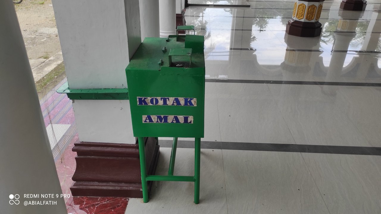 Terdapat lemari kecil di sisi samping pintu masuk masjid yang menyimpan Alquran untuk dibaca oleh para jamaah, demikian juga terdapat kotak amal bagi warga yang ingin bersedekah membantu pembangunan Masjjd, juga terdapat mukena bagi jamaah wanita dan juga tirai pembatas bagi jamaah wanita yang ingin shalat di Masjid.