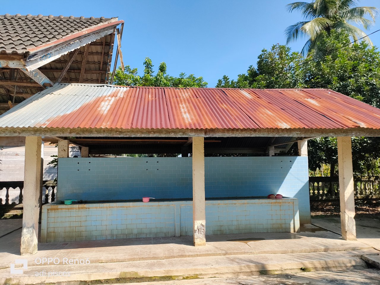 Dan di halaman masjid ini terdapat satu balai yang dapat di jadikan sebagai tempat istirahat untuk pengunjung masjid dan juga terdapat WC yang bisa digunakan oleh masyarakat dan pengunjung masjid, walaupun terlihat kumuh tapi masih sangat terawat dan bersih