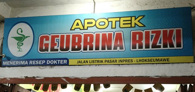 Malam itu, saya pergi ke toko obat untuk membeli obat ibu yang sedang sakit. Ibu saya sudah beberapa hari mengeluh nyeri di kaki karena asam urat, serta Kolesterol. Ibu juga mengeluh mengalami gatal-gatal di seluruh tubuhnya. Tidak ingin menunda-nunda, saya langsung mendatangi toko obat tersebut, yaitu Geubrina Rizki yang terletak di Kampung Jawa Baru, Kecamatan Banda Sakti, Kota Lhokseumawe.