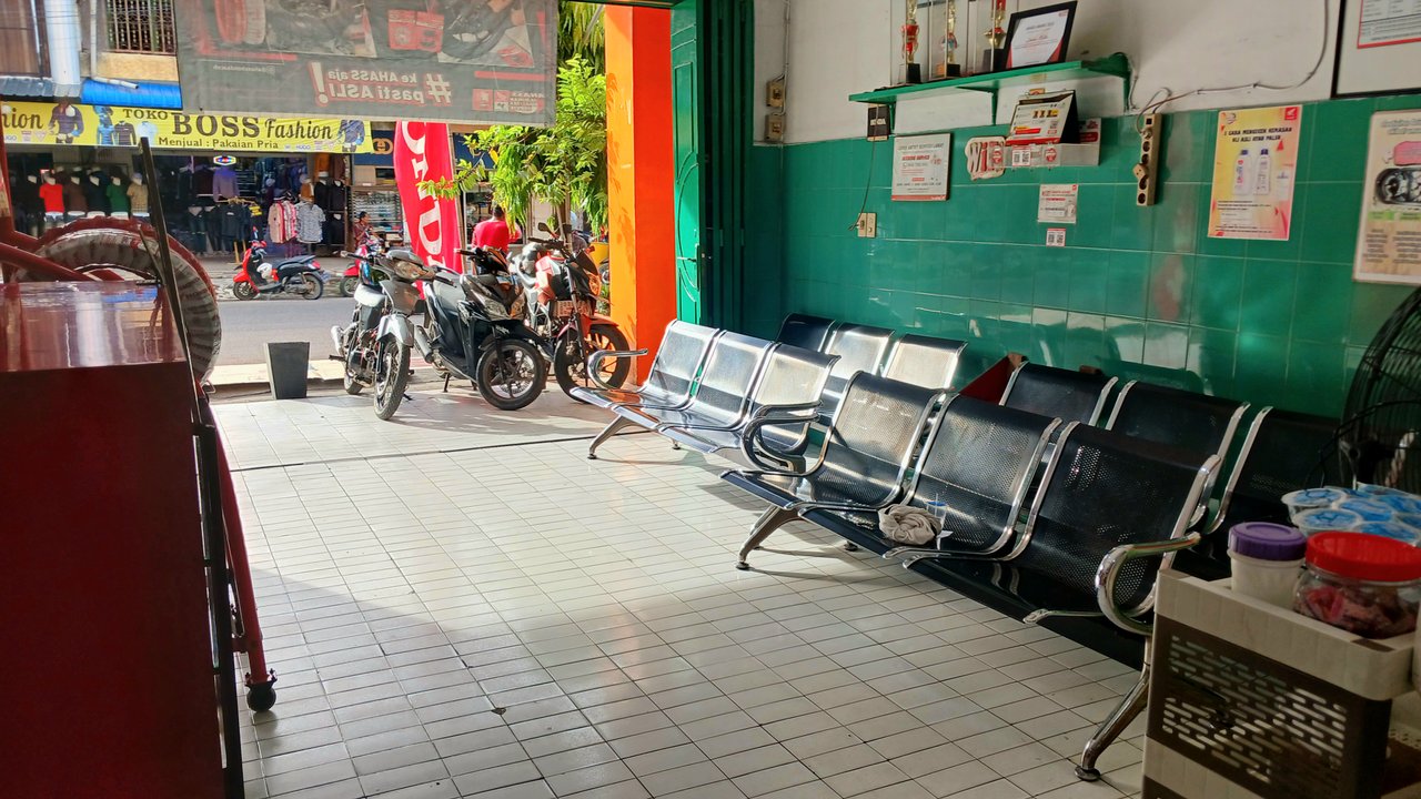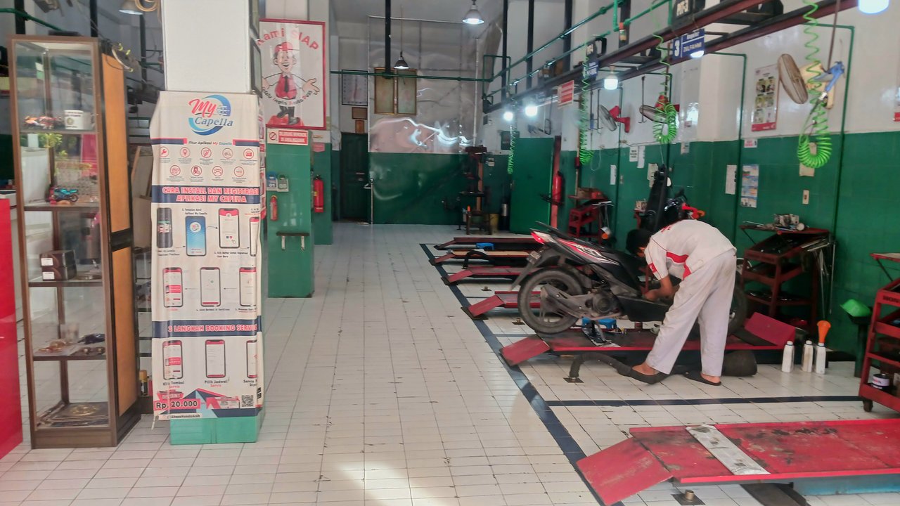 Fasilitas di bengkel ini sangat lengkap, seperti kipas angin, kamera pengawas CCTV, televisi, tempat penyimpanan helm, dan air mineral gratis untuk pelanggan. Menurut saya, mereka benar-benar memanjakan pelanggan agar tetap nyaman.