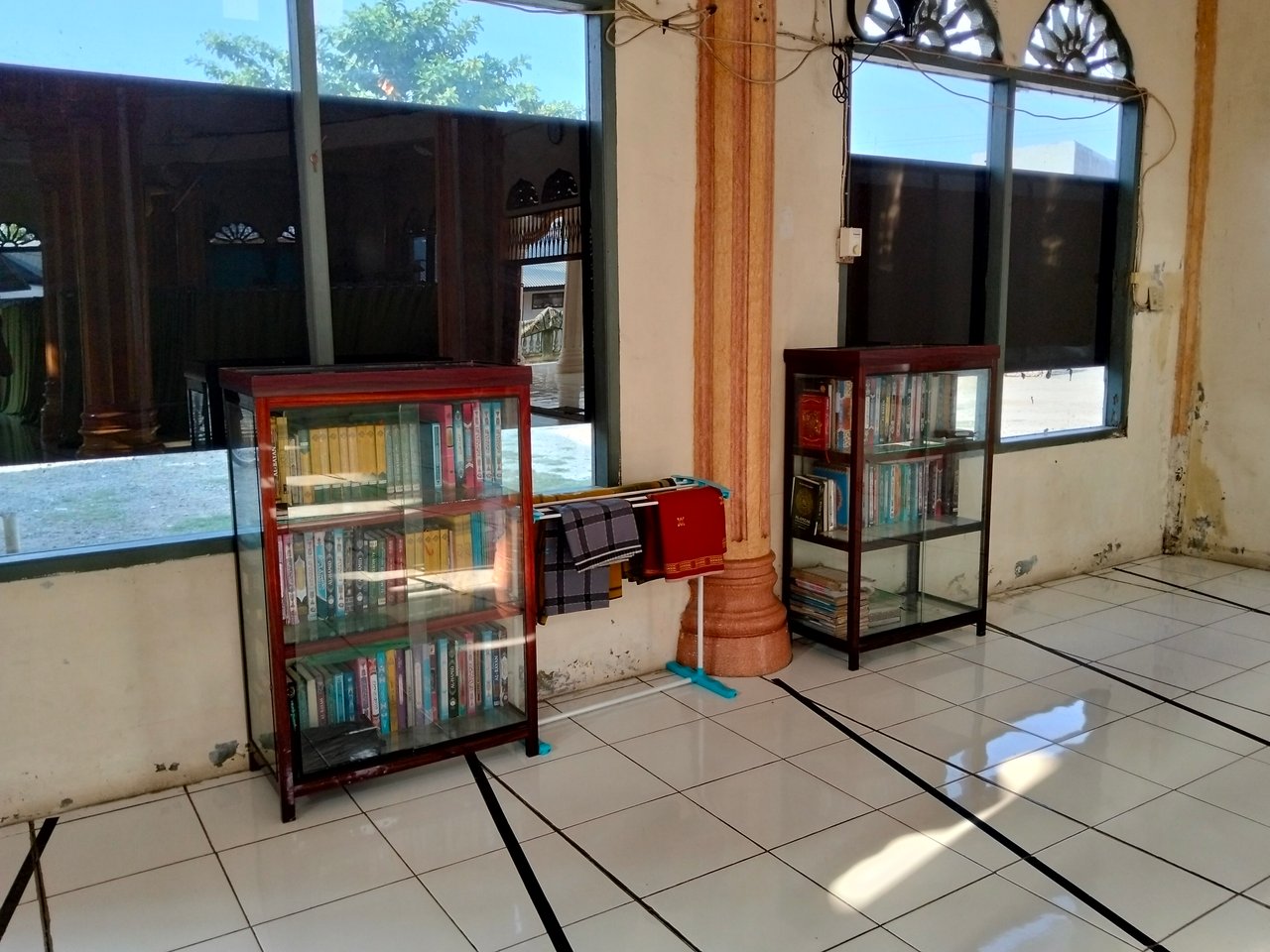 Dan di dalam masjid ini juga telah di sediakan kotak amal oleh pengurus masjid, untuk para jamaah yang ingin bersedekah dan di bagian belakang masjid juga terdapat teras masjid yang sangat luas sehingga sangat cocok untuk digunakan untuk salat.