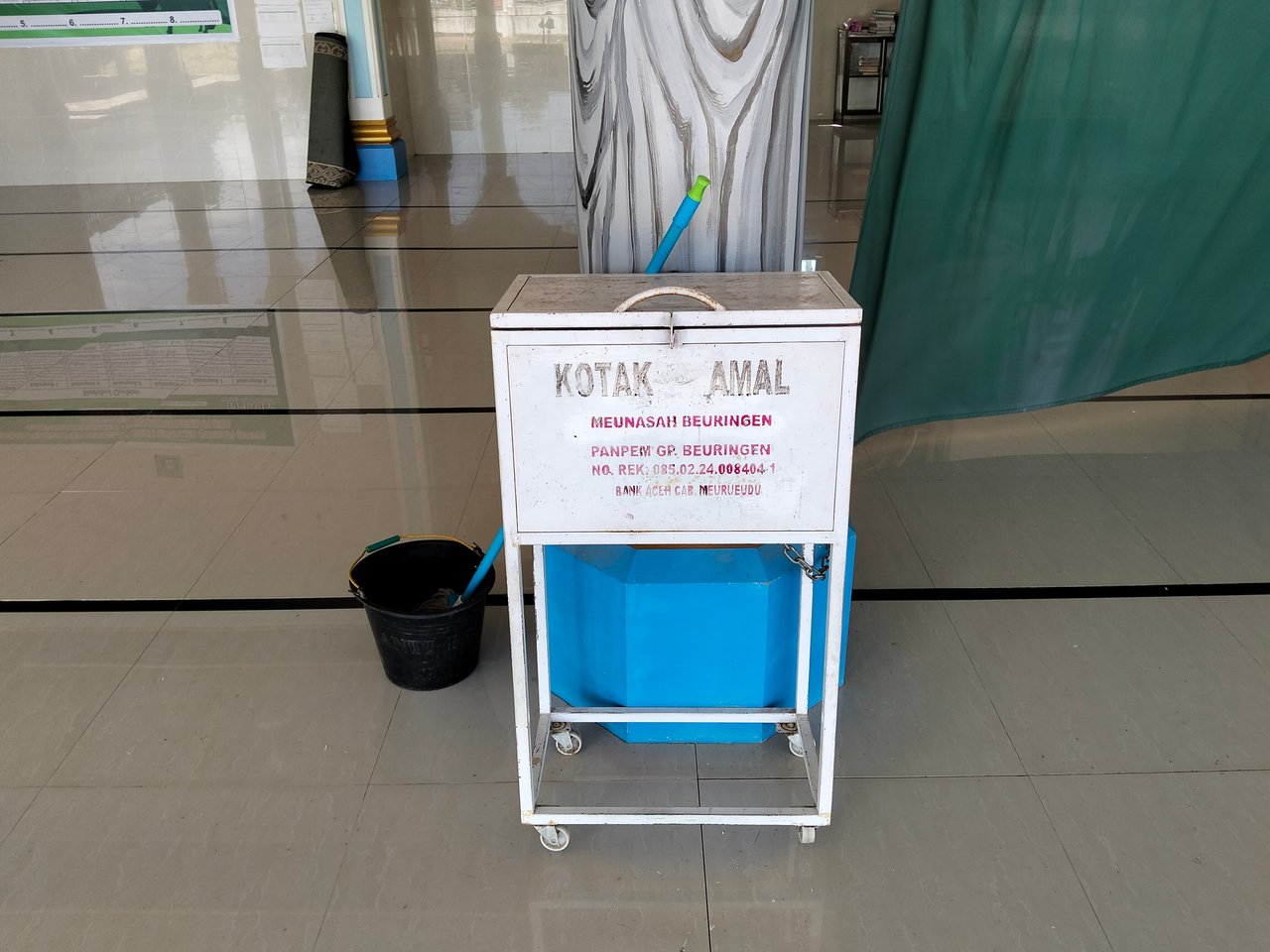 rak al-quran, dan kotak amal