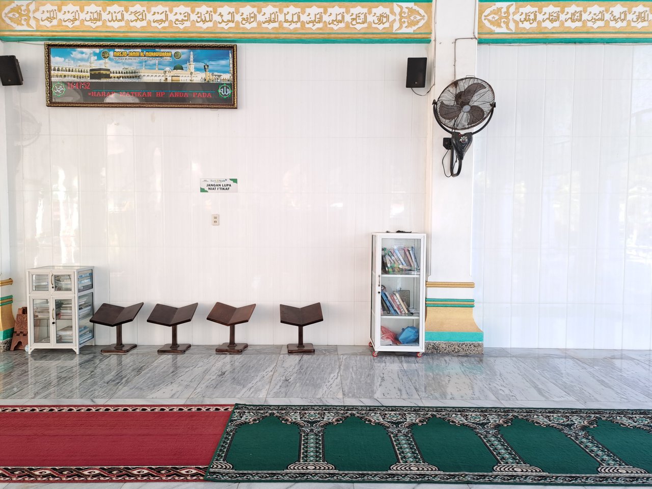 Di dalam Masjid ini saya juga melihat tersedia kipas angin untuk membuat suasana di dalam ruangannya menjadi lebih sejuk, kemudian saya melihat di dalam Masjid ini juga tersedia Al-Quran yang selalu bisa kita baca saat kita mengunjungi Masjid ini, dan untuk para jamaah yang ingin bersedekah yang mengunjungi Masjid ini disini juga telah tersedia kotak amal.
