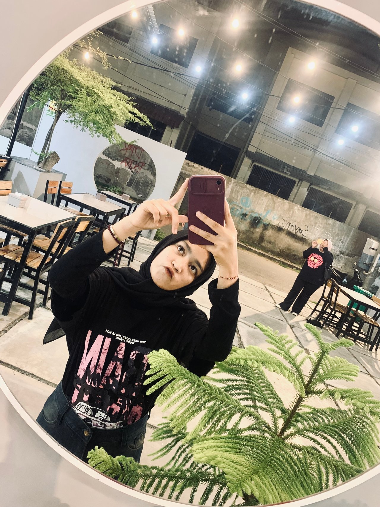 dan ada dua cermin yang sangat aestetik yang satu didalam dengar ukuran besar dan satu lagi diluar dengan ukuran yang lumayan kecil dan saya tidak lupa untuk berfoto dicermin itu soalnya sayang kalok tidak berfoto dicermin itu.