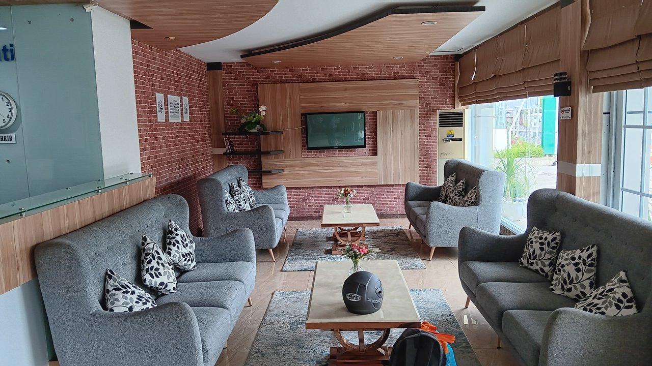 Begitu tiba di area parkir depan hotel, saya langsung masuk chekin. Halaman depan hotel langsung bersisian dengan jalan Sultan Iskandar Muda yang tembus ke pelabuhan Ulee Lheue. Dari sana, kami berjalan ke lobi utama yang terasa sejuk dan modern.