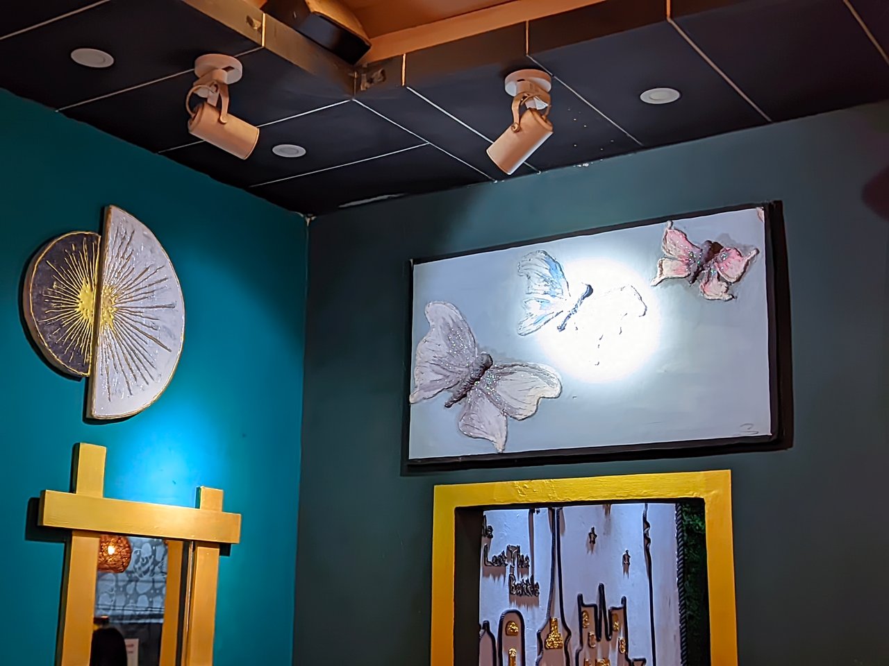 The restaurant is not that big, but the atmosphere inside the restaurant was very nicely arranged. The most interesting thing is the art work and lighting on their walls, which looked quite beautiful, and also looked very aesthetic. There were quite a few canvases on the walls, which looked quite beautiful. Overall, their atmosphere was very nice for a small restaurant.