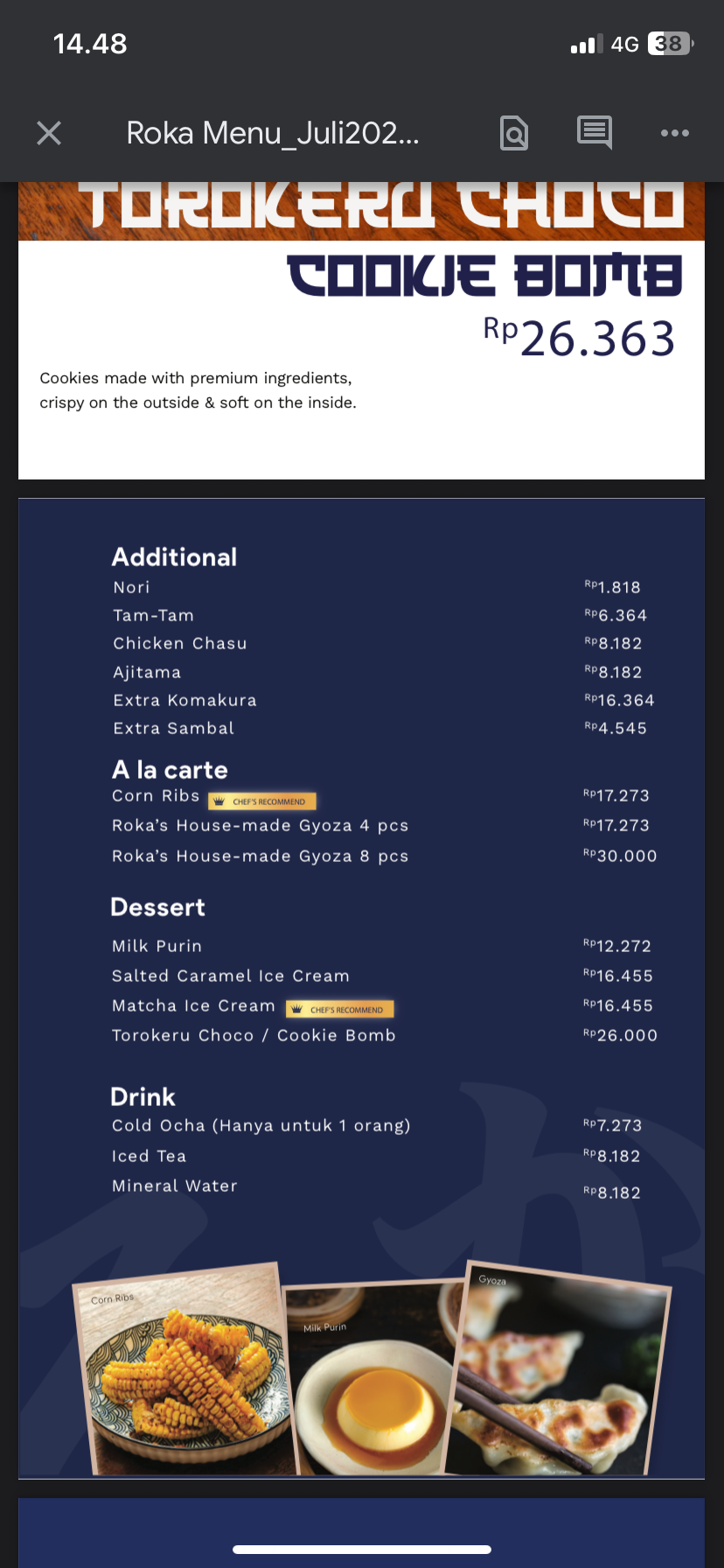 Menu yang saya pesan cocok banget buat yang mau coba ramen di Roka dengan menu yang best seller menurut saya. Simak harganya berikut: