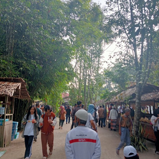 Di sekitar stand makanan tuh banyak pohon bambu, suara gemerisik angin, lampu-lampu remang ala lampu minyak (tapi versi listrik 😆), dan backsound musik keroncong, lagu lawas, atau pertunjukan tari tradisional. Kadang ada juga orang yang baca puisi atau nyanyi lagu jaman dulu.