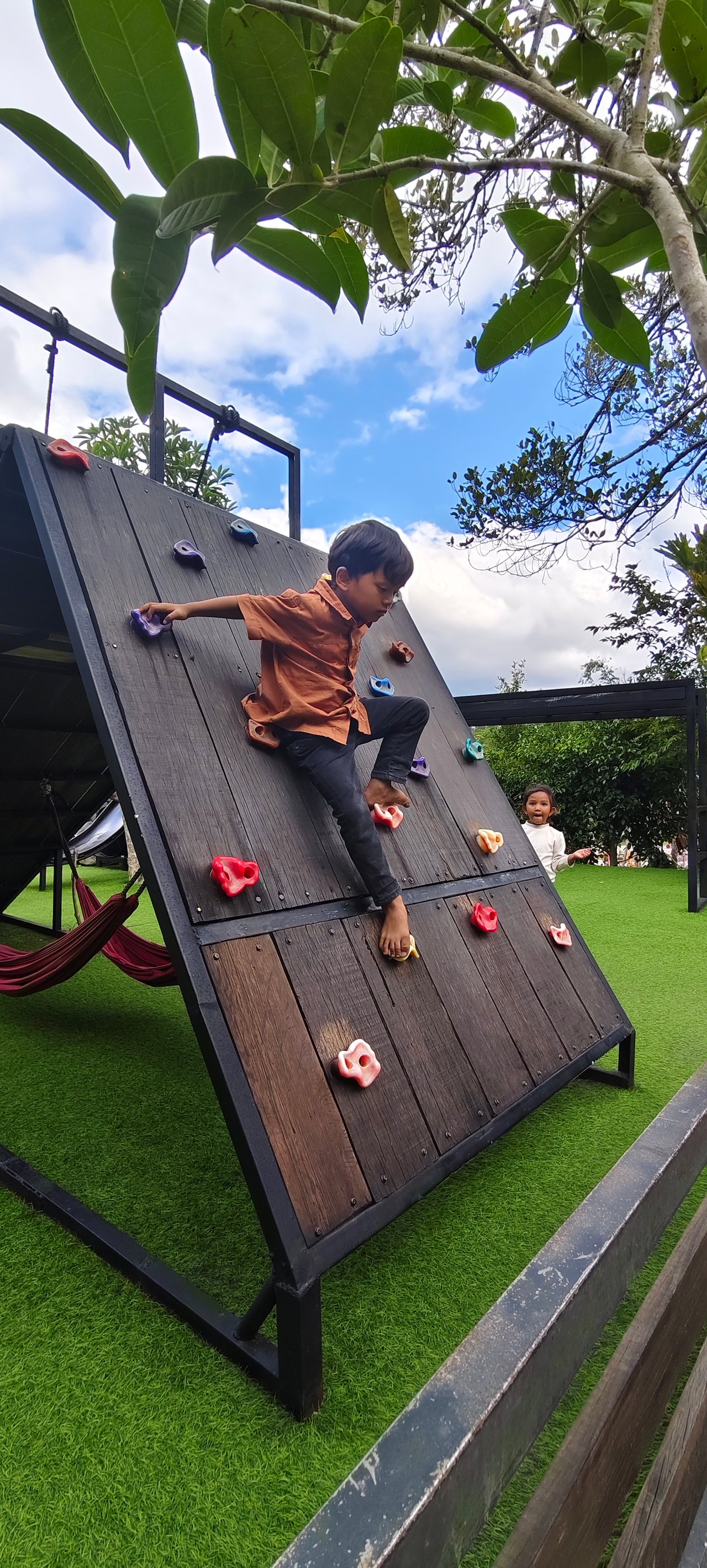 Our youngest son, Ubay, bravely tried the climbing wall. At first, we thought he just wanted to look, but suddenly he started to climb up and then went down so calmly! My wife was a bit panicked watching him, while I honestly felt that I wouldn’t dare to do what he did.