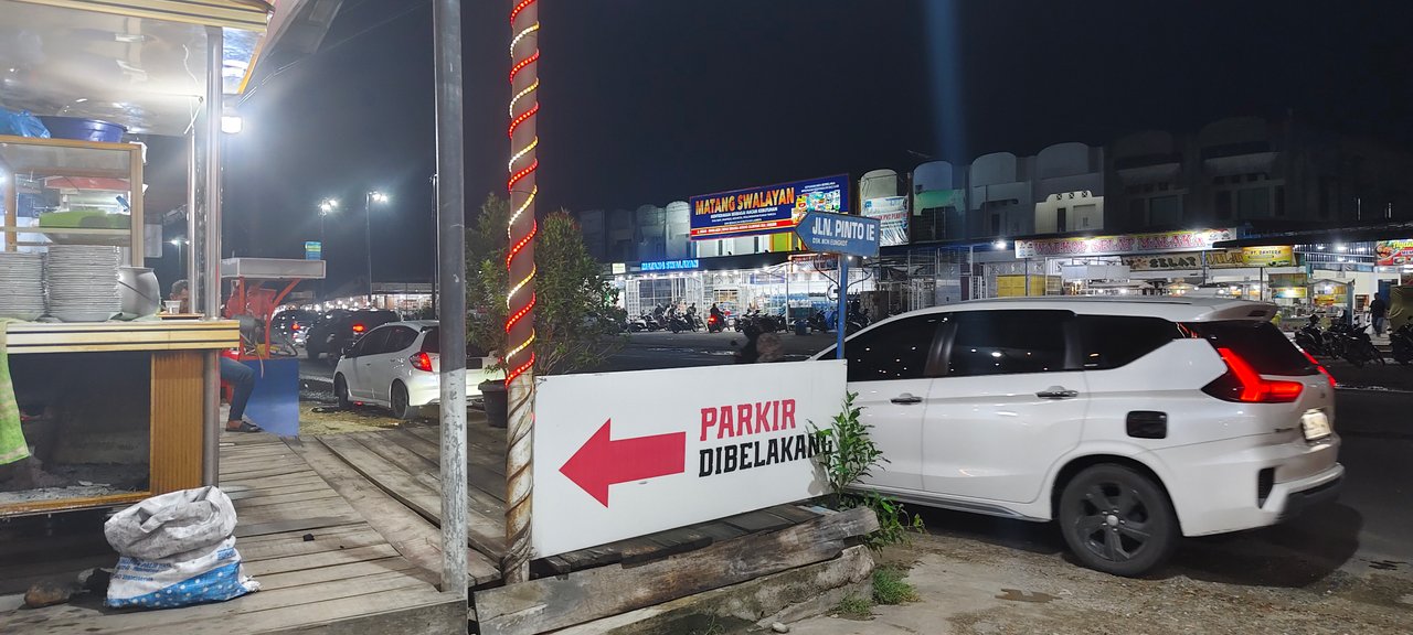 Ocean Cafe punya konsep parkiran yang tertata rapi. Motor diparkir di samping cafe, sedangkan mobil mendapat tempat di area dalam. Uniknya, di parkiran mobil ada lampu bertuliskan “Ocean” yang menyala indah di malam hari Jadi bukan cuma tempat parkir, tapi juga spot foto keren yang bikin vibes makin hidup.
