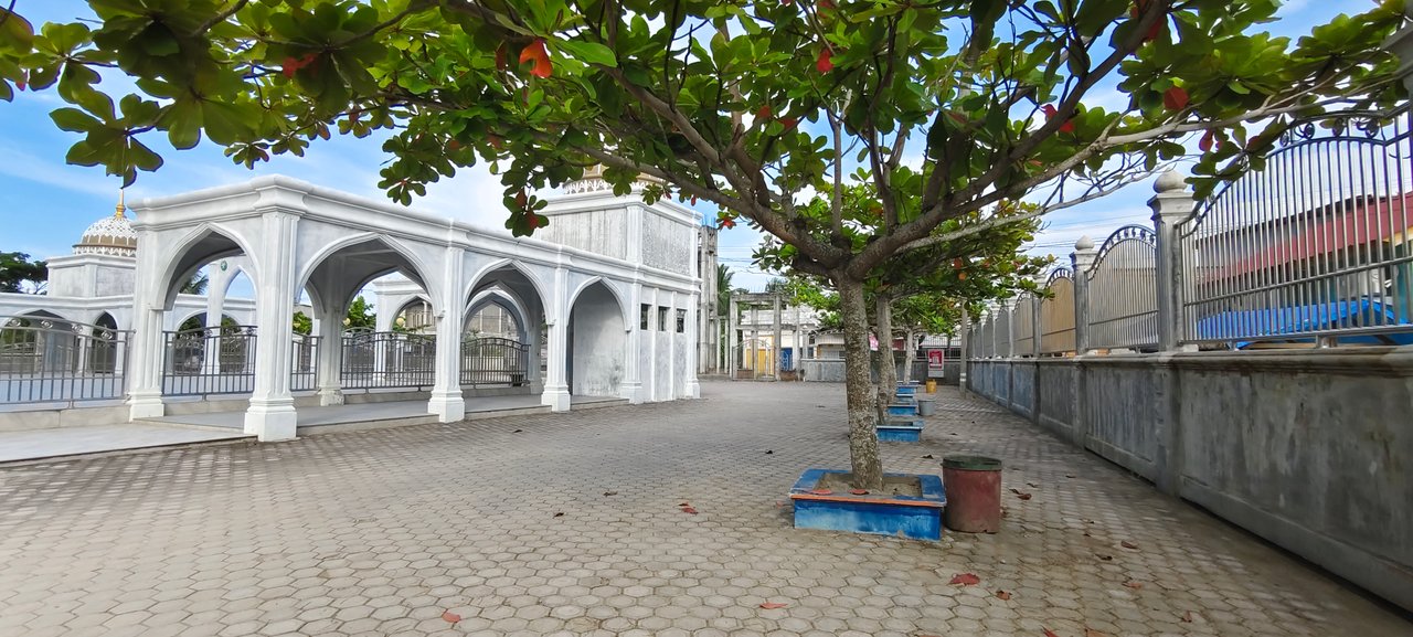 Masjid Syura Kandang is one of the most beautiful mosques in Lhokseumawe. From the outside, the building looks grand and elegant with tall towers, wide arches, and blue domes shining under the sunlight. The mosque stands about 100 meters from the main Medan–Banda Aceh road, easy to reach and surrounded by a peaceful atmosphere.
