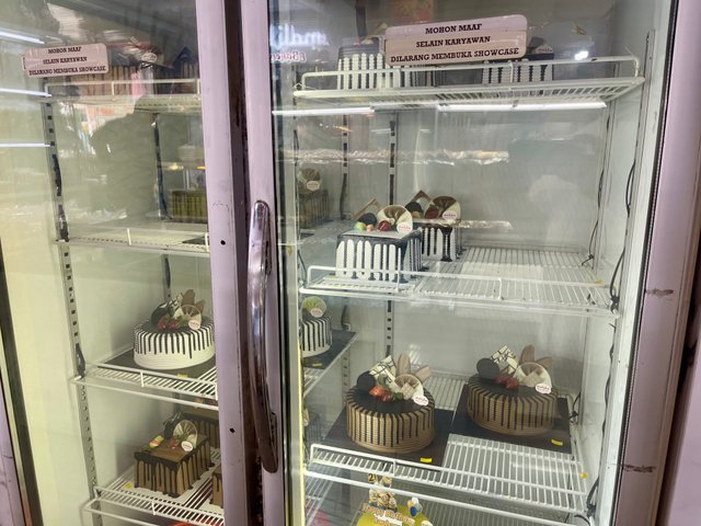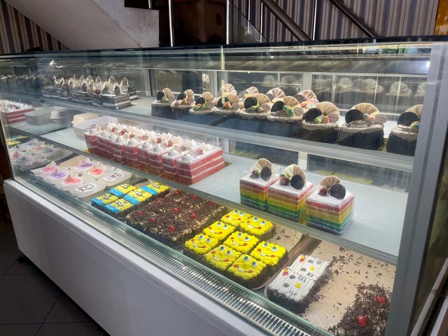 Semua jenis kue dijual di toko ini dan terkesan lebih lengkap dari toko-toko kue yang lain. Selain bolu yang tersedia dengan berbagai pilihan rasa, warna, bentuk dan ukuran, disini juga menyediakan kue ulang tahun dan bisa dipesan sesuai keinginan. Untuk bolu dan kue ulang tahun, rasanya benar-benar sangat lembut sekali. Saya membelikan satu kue ulang tahun dengan ukuran sedang untuk anak saya yang sedang mondok di dayah. Harganya cuma 40000 IDR atau setara dengan 19,78 Steem.