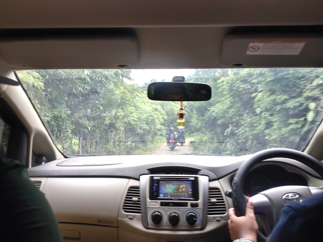 Pukul sudah sore kami memutuskan untuk pulang agar tidak macet di jalan perkampungan menuju jalan besar, benar saja saat mobil kami ingin keluar banyak mobil dari arah sana yang baru datang juga alhasil harus bersabar jalan hanya muat satu mobil, jika ada dua mobil berlawanan satu mobil harus mengalah untuk menunggu mobil laiinya, tapi pemandangan yang didapat kan sepadan dengan perjalanan yang ditempuh.