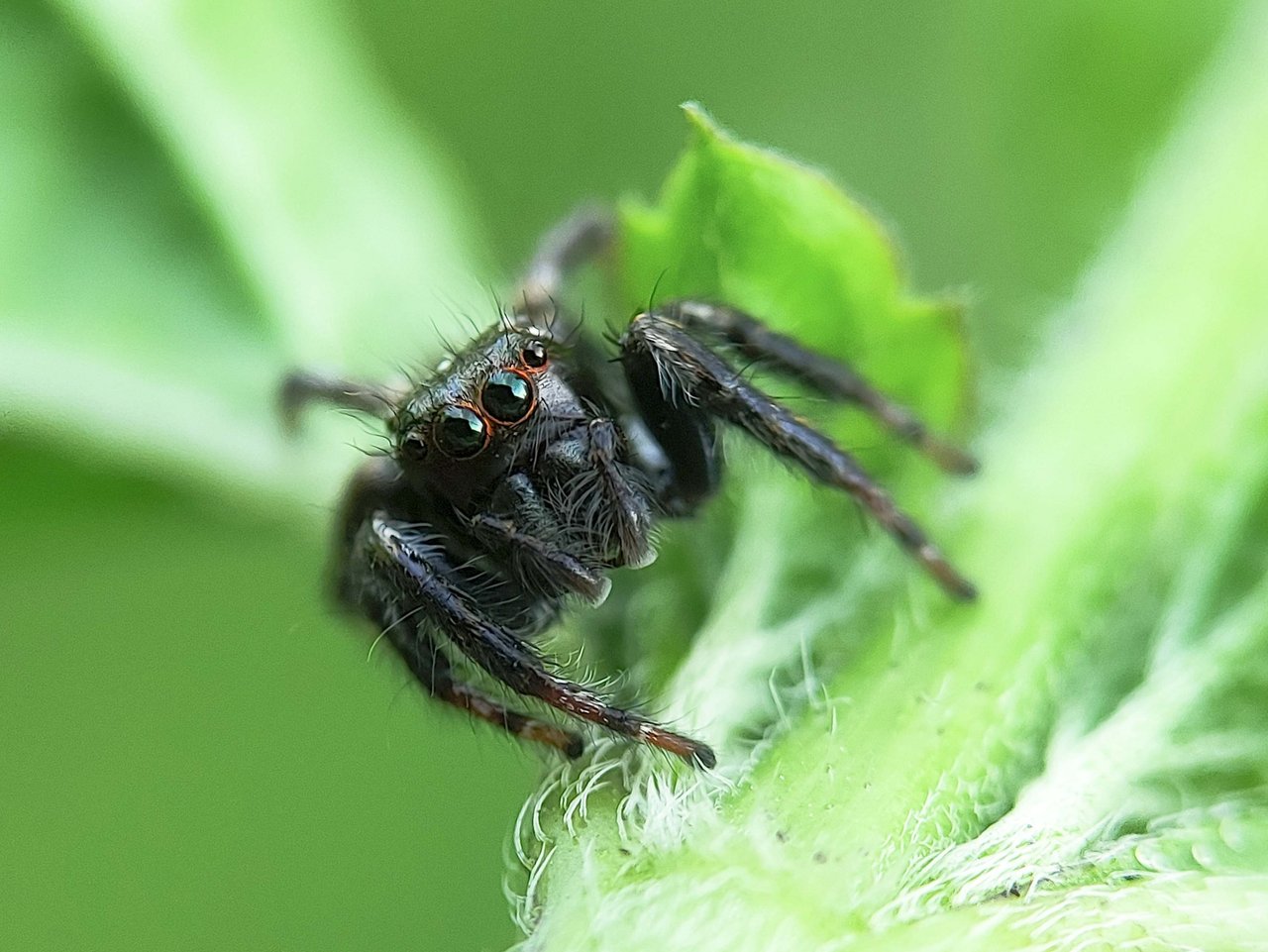 I enjoy looking at Black Jumping Spiders. Their big, curious eyes just draw you in. Those fuzzy, jet-black bodies show a real grace. Each tiny leg seems ready to spring. They are small wonders, quite charming to watch.