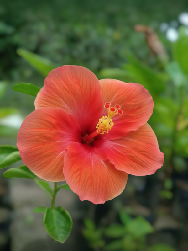 A unique flower with vibrant shades of red that stood out beautifully among the greenery.
