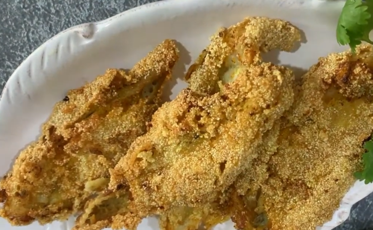 Take them out and put them on a wire rack. This lets extra oil drip off. The fish gets firm and crisp while resting.