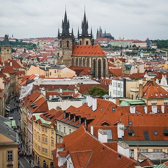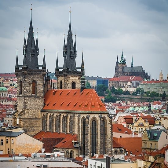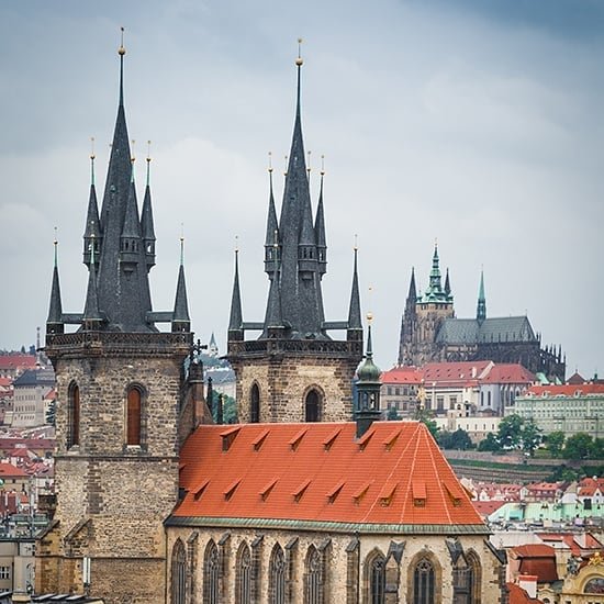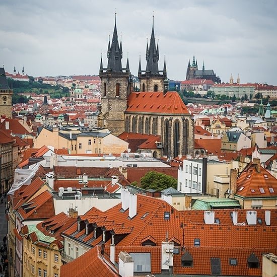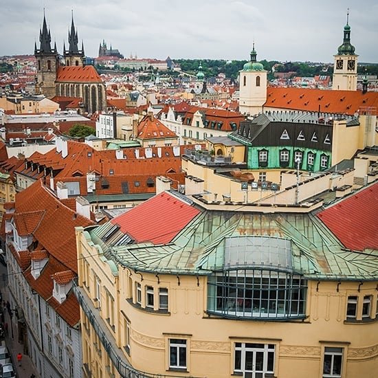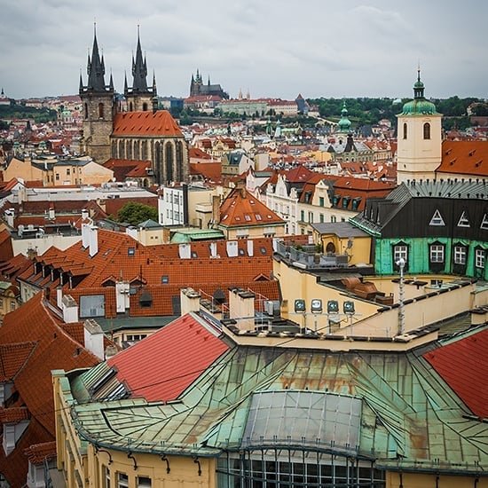 Прага - один из самых колоритных городов Европы, с очень интересной архитектурой и чрезвычайно уютным старым центром. Мы побывали там в конце мая - начале июня, много гуляли, любовались красивыми видами и, конечно, пили пиво :) Так выглядит город со смотровой площадки Пороховой башни! Было пасмурно, но фото получились довольно атмосферными.