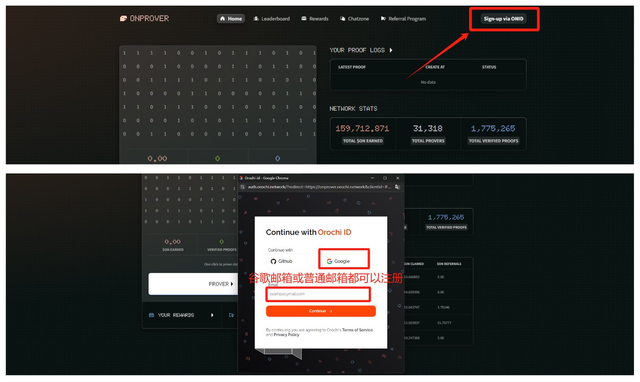 Navigate to the official sign-up link https://onprover.orochi.network and complete registration using your email.