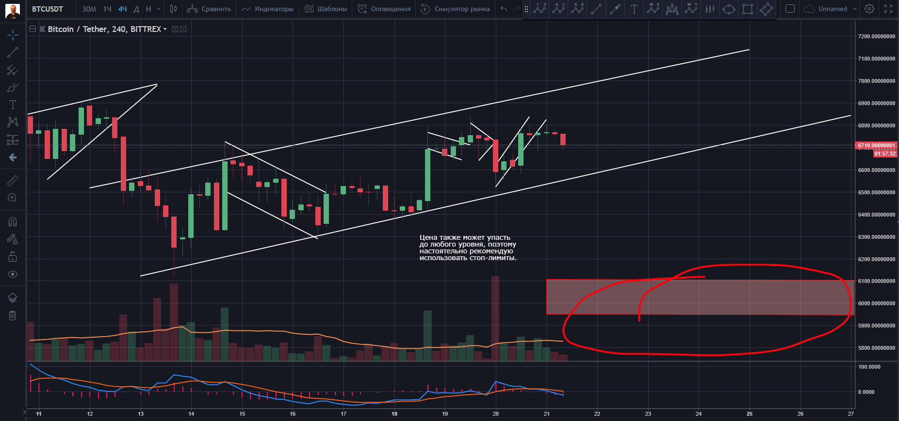 #Bitcoin( BTC/USD/Bittrex) Цена движется в созданном канале, что дальше...
