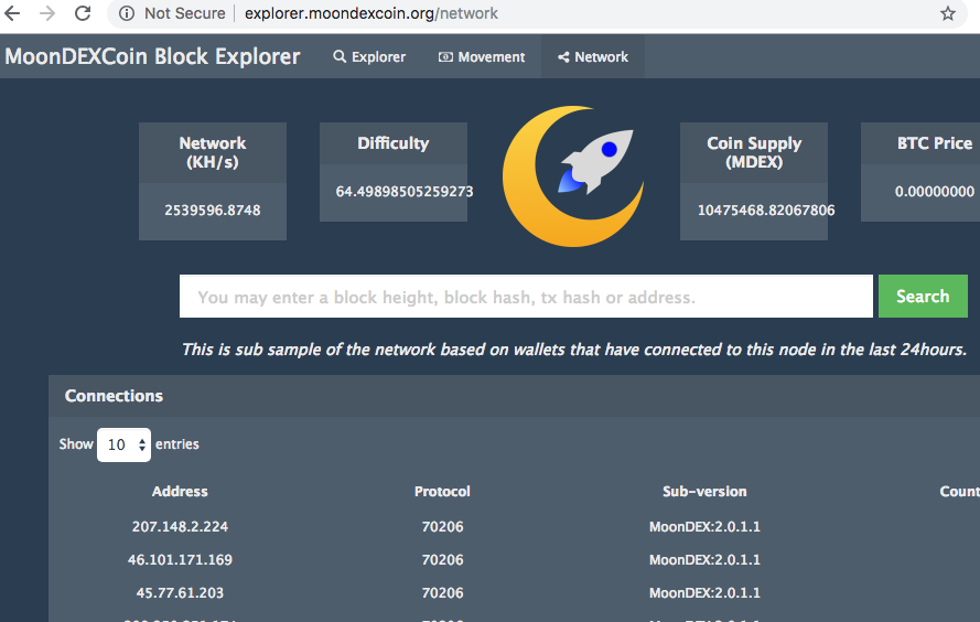 Having been active in the BitShares community for a while I noticed a new exchange pop up called MoonDex.io. Their explorer http://explorer.moondexcoin.org/network is still up, but I don’t expect it will be for long. I found the website, discord chat room and chatted with the founders who were shy of sharing much about their identity. (bad sign)