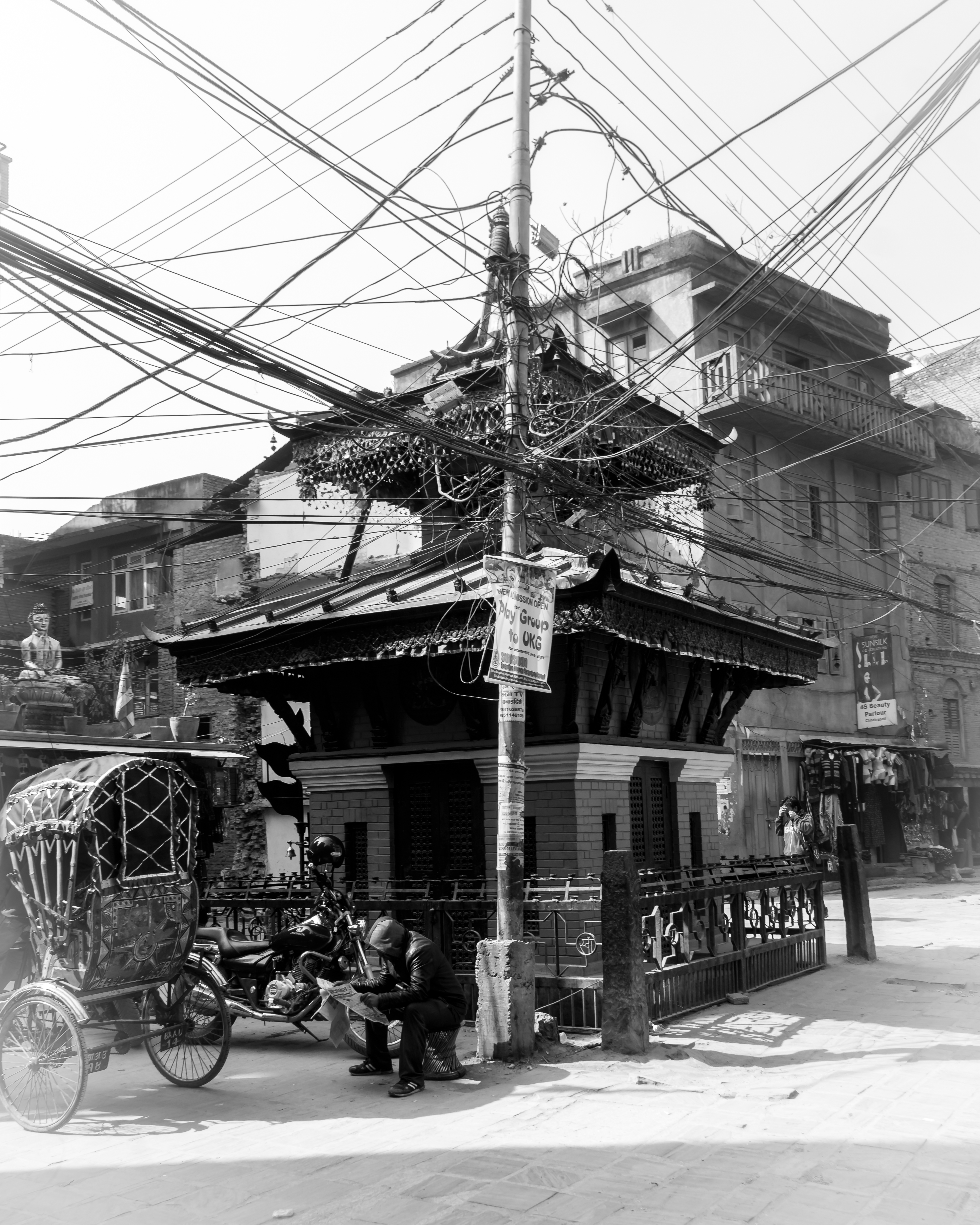 TangledsteemCreated with Sketch.philpotg (69)in Black and white • 2 days ago Hi all, A man sits below an untidy tangle of wires in the streets of Katmandu. Taken on a trip to Nepal. CameraSony A6000 #blackandwhitephotography #photography #travelphotography #streetphotography #steemphotos