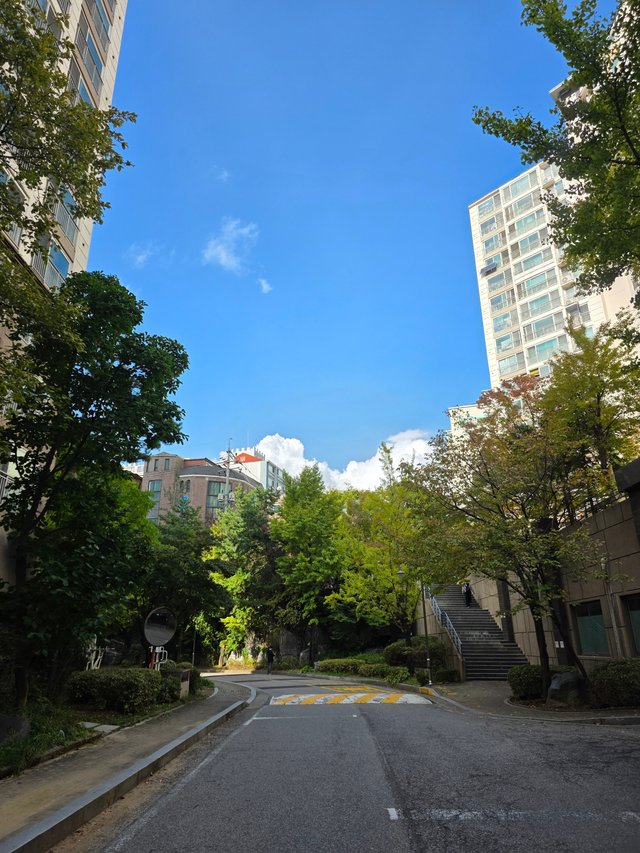 걸음을 옮길수록 햇살이 아스팔트 위에서 반짝였고, 초록과 노랑이 어우러진 나무들이 “아직 가을은 진행 중이야”라고 속삭이는 듯했습니다. 요즘 SNS에서 ‘가을감성 필터’가 인기라는데, 오늘의 하늘은 그 어떤 필터보다 진짜였어요.