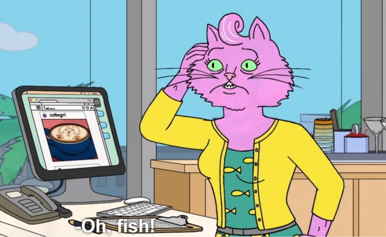 She shouts "oh my Fish!" instead of "oh my god!", that was a funny scene I liked a lot.