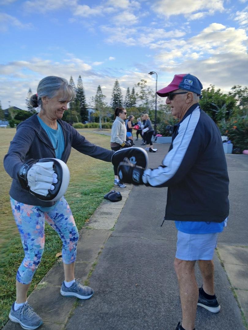 Bright sunshine, some clouds, slightly brisk temperature but no wind greeted my group for a 45 minute free boxing session at Newport Park today. Stocklands, who developed the area have sponsored free fitness classes presented by qualified trainers since 2017. The weekly schedule is 2 mornings cross training, 2 mornings boxing and 1 morning yoga. Designed for participants to workout at their capabilities. Boxing is great workout to raise the heart rate.