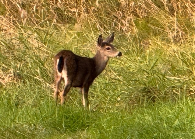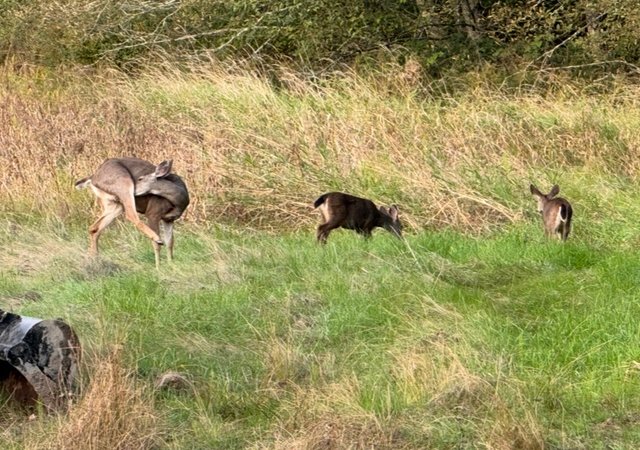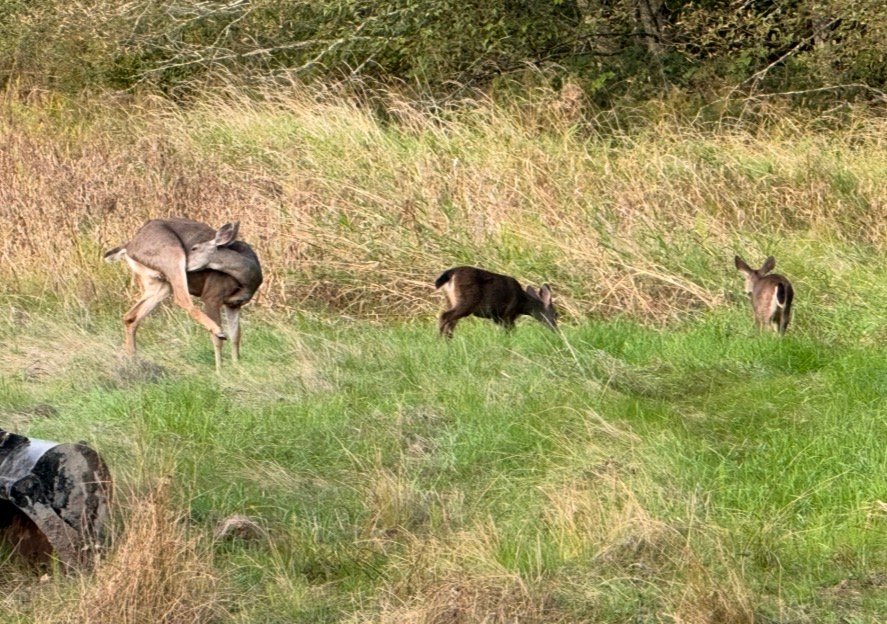 We headed up the road to check out the dredging of the pond. I found a mama deer and her two babies there.