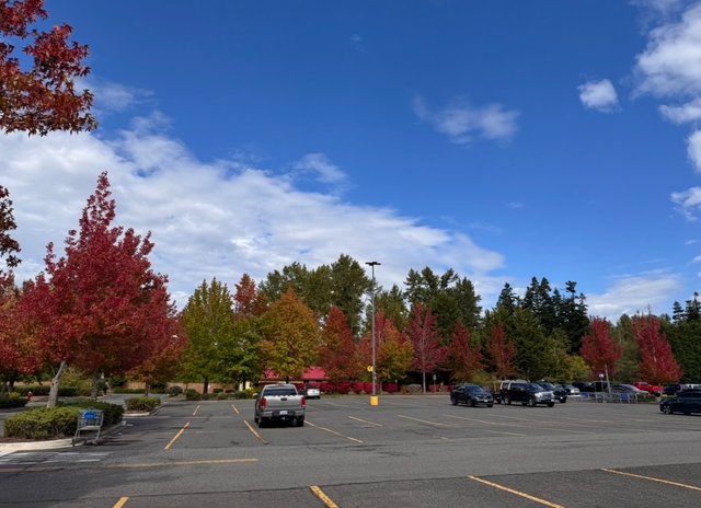 Check out the fall color in this parking lot! They planted the right trees and shrubs for the most colorful impact!