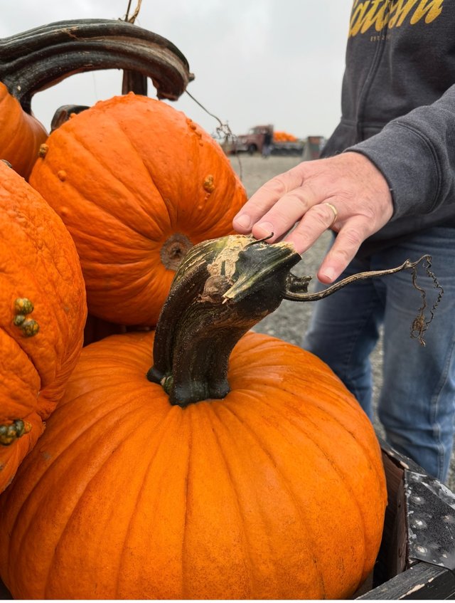 Outside, there were bins of pumpkins should you not want to traipse out into the pumpkin patch. Get a load of the size of that stem! I asked @silvertop to put his had near it for scale.