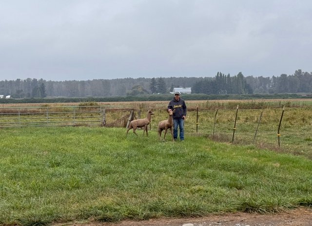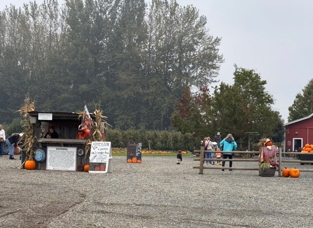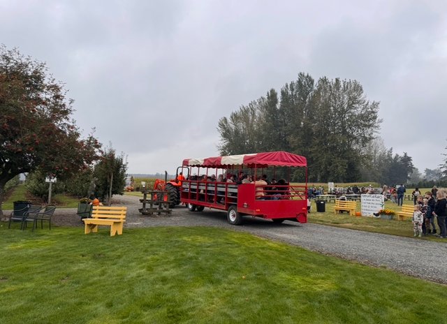 The weather was if-y. They weren’t calling for rain, but our house was in a cloud and it rained and then misted. This continued as we came down to the valley but slowly waned as we approached Everson. The farm is a bit outside of Everson towards the west, and as we pulled up, although seriously overcast, the drizzle had stopped!