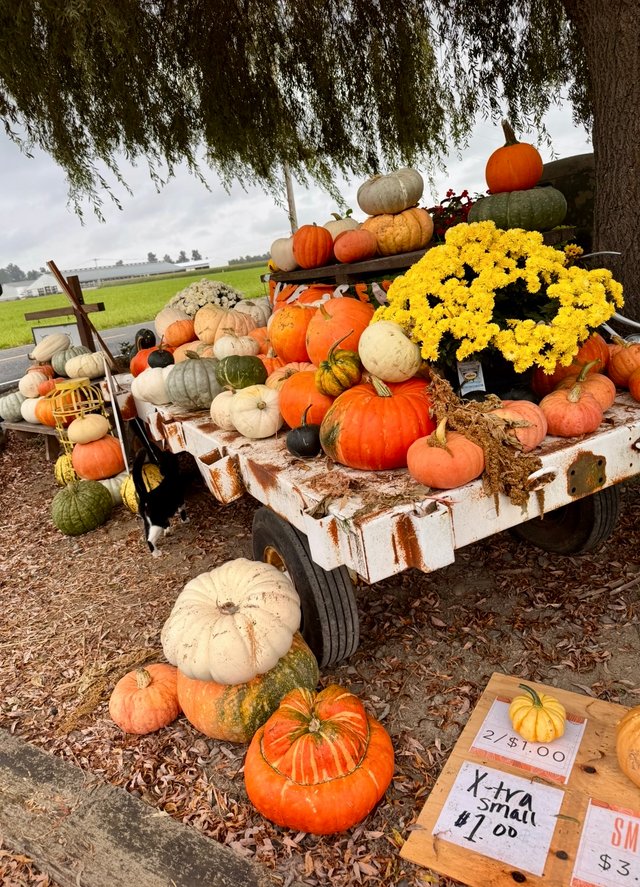 When the service concluded, we headed home to get a couple things done and then set out to look for my 4th pumpkin addition to my collection! We visited a place last year and managed to stumble upon it again. Kitty was the pumpkin greeter! She was super friendly and when I went back to the car to get something, she followed me. I think she would have jumped right in!