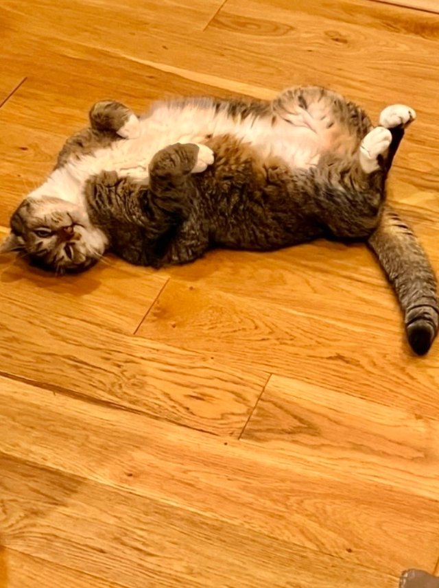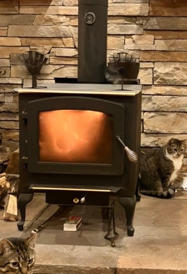 The fourth photo I took last Winter. This is how the boys react to a warm, toasty wood stove!😻😺