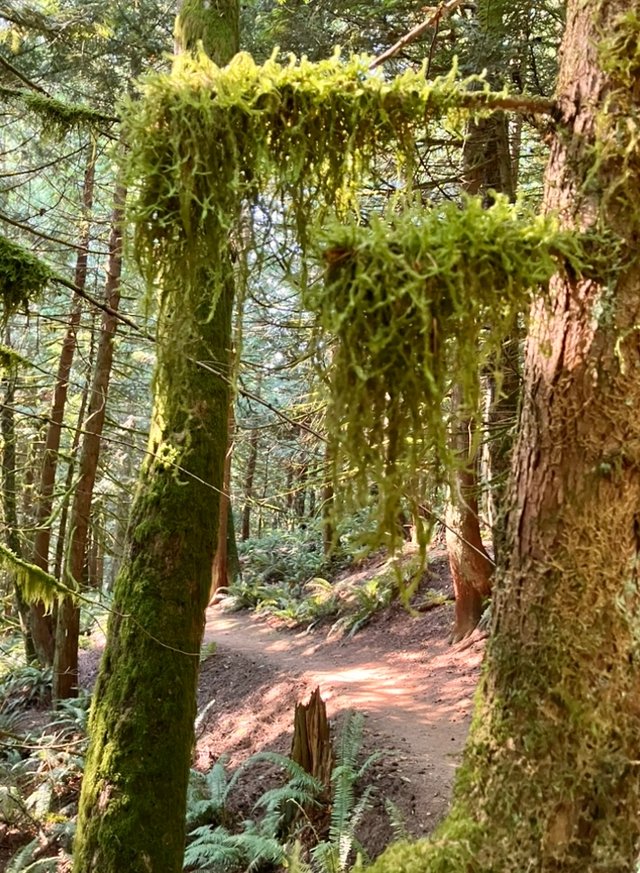 Soon PEPE lead us into a Forest of Western Red Cedar trees, covered with “Spanish Moss”!😊