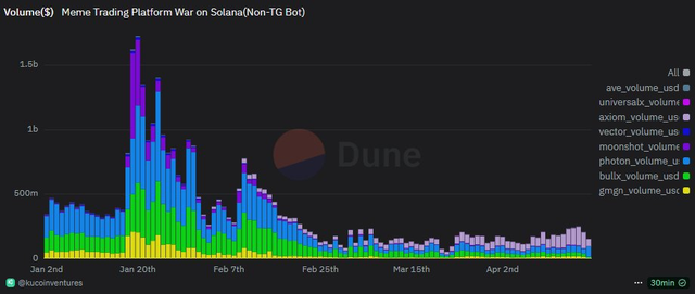 Axiom has recently completed five consecutive days of record-breaking daily trading volumes, with its market share now approaching 60%, marking a new peak.
