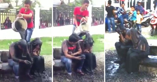 Teenagers have raw sewage poured on them for being alone together in Indonesia
