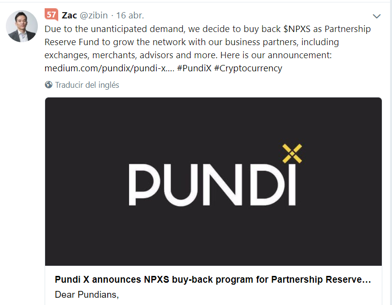 "Due to the unanticipated demand, we decide to buy back $NPXS as Partnership Reserve Fund to grow the network with our business partners, including exchanges, merchants, advisors and more."