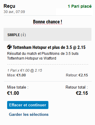 Pari du Jour!! Bet of the Day!! # 14fabinhocrypto (53)in #busy • 7 years ago Premier League!! Tottenham VS Watford Tottenham gagne et plus de 3 buts dans le match #fr #sports #betting #steemit