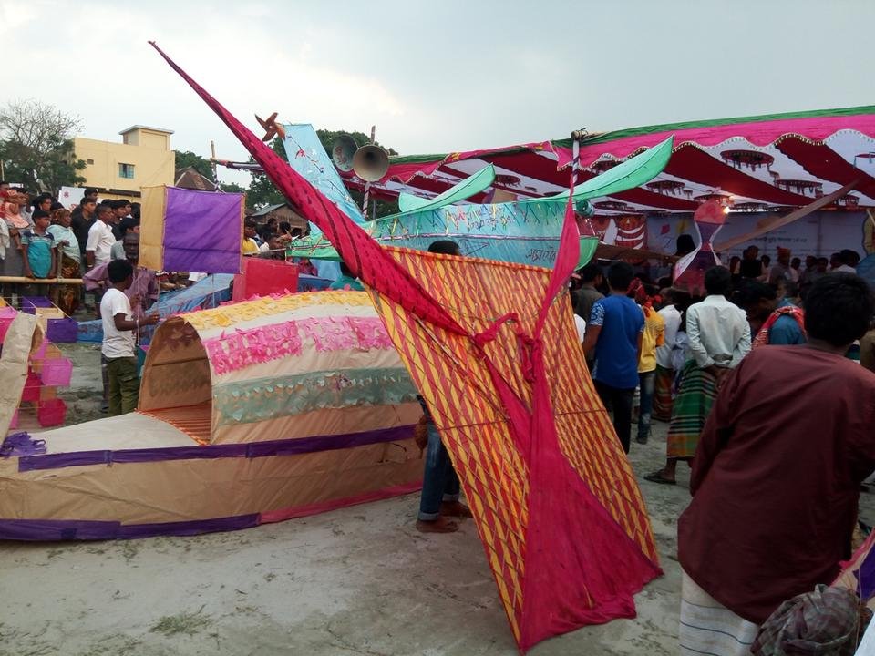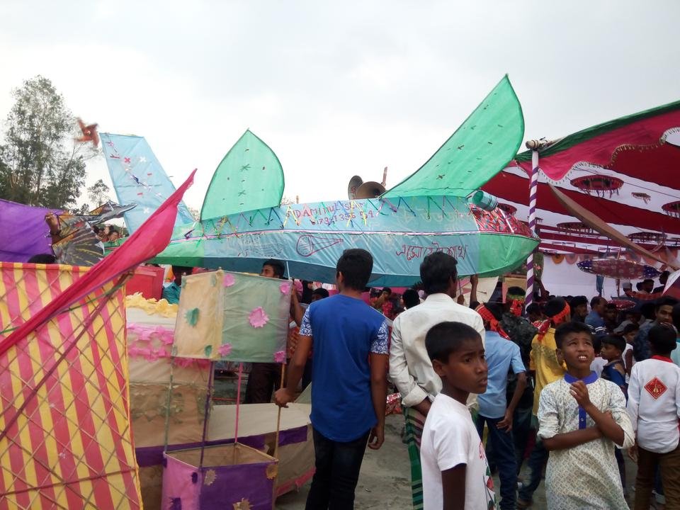 In front of the kite festival, on the banks of the Jamuna, on the outskirts of Kirti, thousands of people including men and women, the Milan Mela. This is a different celebration of the Bengali festival. Hundreds of different types of kites are seen flying in the sky in this kite festival. It is worth mentioning in these kites - boat kites, I have competed in different types of kites, including Sophiaan kites, Pigeon kites, Airplane kites, Koiira, Chila, Patenga, Flowers, People kites, Peacock. Before the festivities began, there were 223 kites registered in 16 categories.