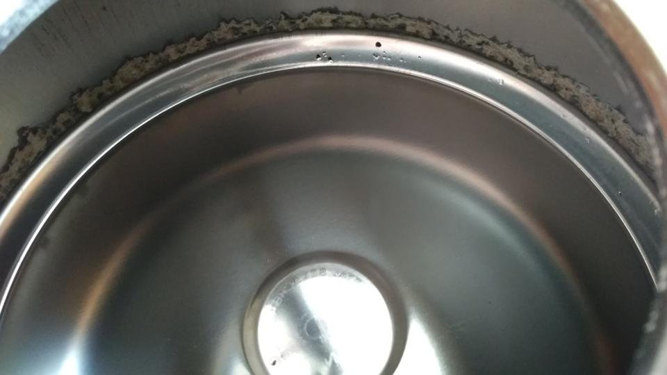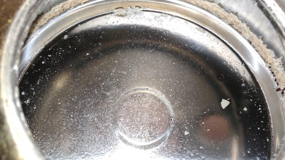 Jak widać, osad kamienia na dnie został zruszony, natomiast pozostał pierścień kamienia w bocznej ściance czajnika.