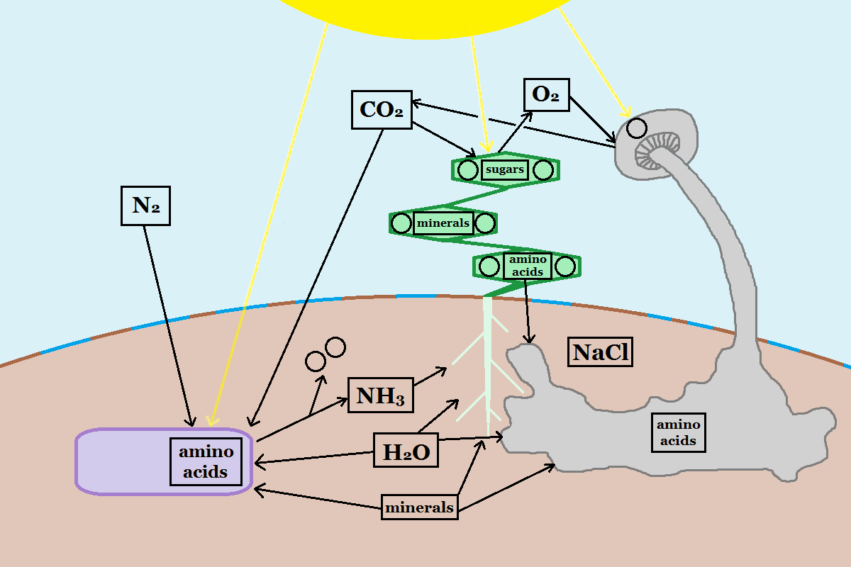 Without getting deeply into the science of fungi (you can do that here), they absorb water and decaying plant matter, to form proteins to build their structures (to grow, reproduce, etc):