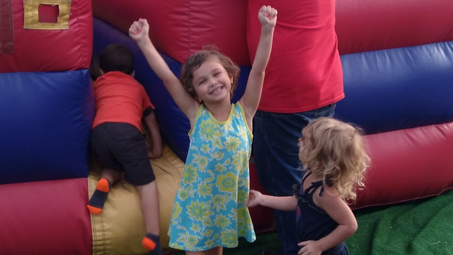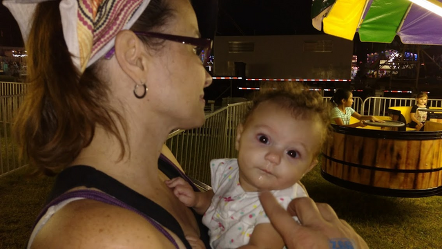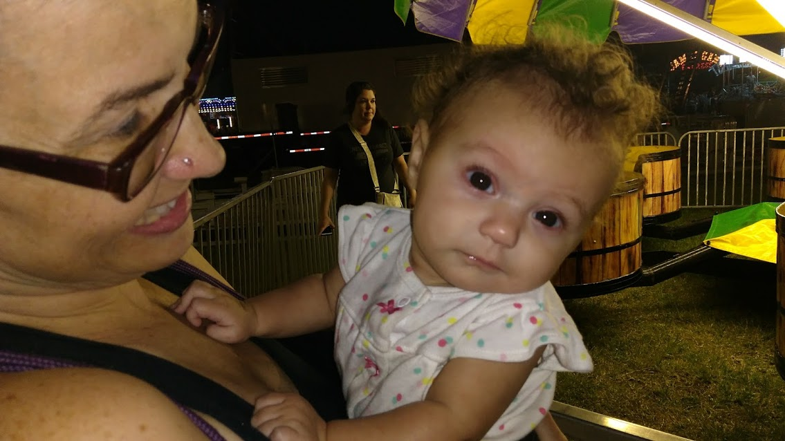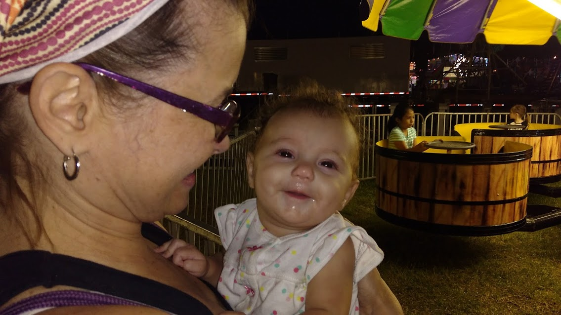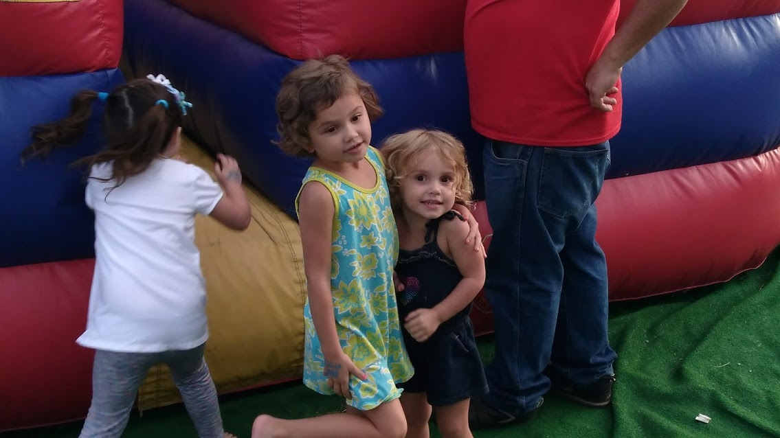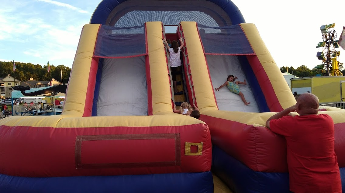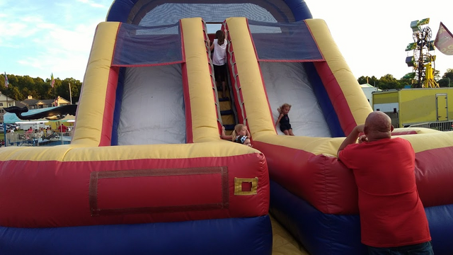 As the evening progressed and it started getting dark, we got to the other side of the fairgrounds where there was tons more of fun things to do for the kiddies. One of which, was one of those bouncy inflatable slides. The girls really enjoyed it...