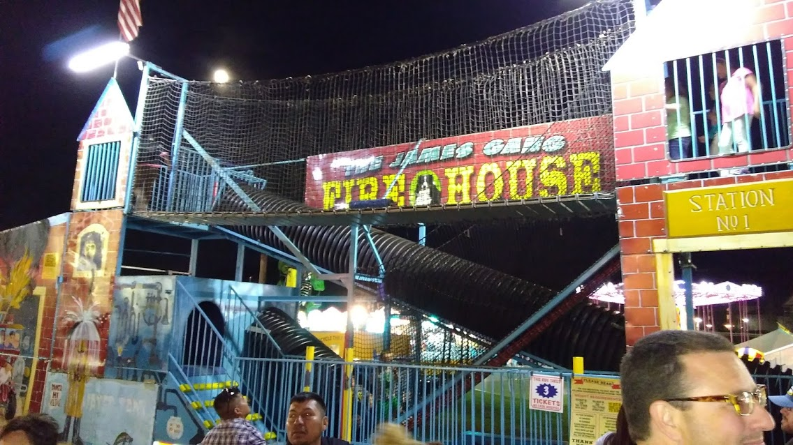 This ride they liked ok, resembled a short roller coaster but with tractor trailer trucks. 'The James Gang'