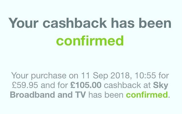 My biggest cashback yet! £105! Thank you! This was from me joining Sky Broadband and TV in August!