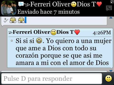Estoy segura que muy dificilmente se consiguen personas que resulten confiables por estas redes, pero me arriesgue, acordamos un día para conocernos, lo invite a un servicio en la iglesia donde me gongregaba anteriormente y nos conocimos en personas. Sinceramente estaba muy nerviosa, pero todo resulto ser muy diferente, me sorprendio mucho conocer su manera de ser y la manera tan unica de pensar y ver las cosas. Una persona diferentes y lo mas importante es que tiene un corazón enamorado de DIOS.