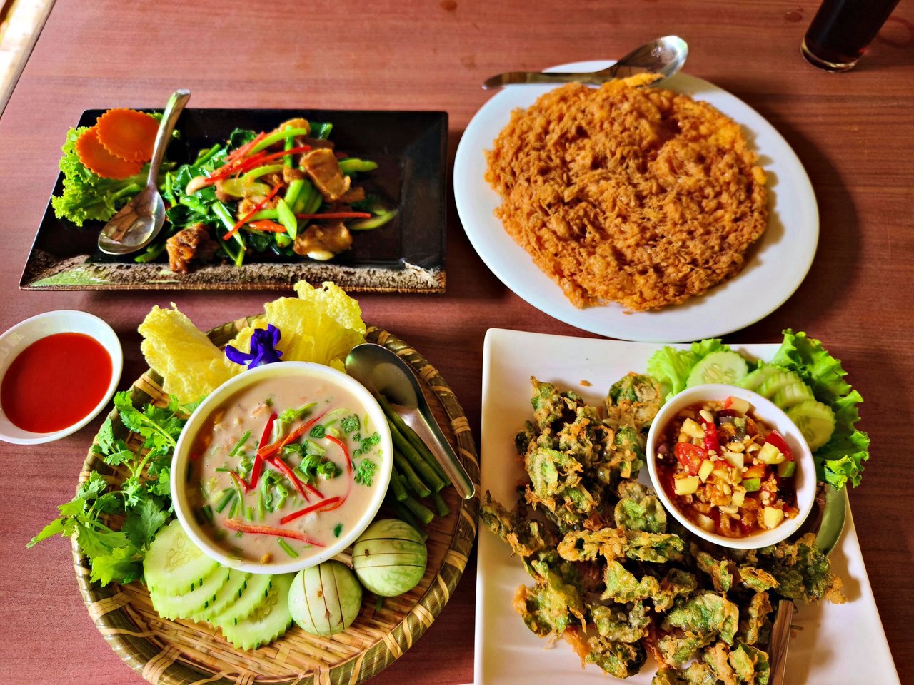 This was the shrimp chili dip (lon goong), beautifully served with a colorful variety of fresh vegetables on the side. ๐ฅฆ๐ฆ๐ฅฌ