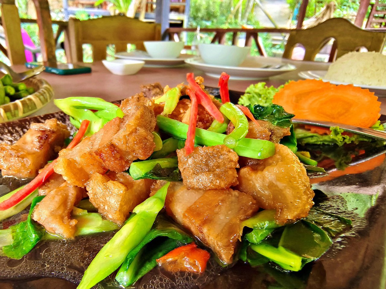 The last dish was stir-fried kale with crispy pork โ a classic combination that was cooked to perfection and packed with flavor. ๐๐ฝ๏ธ