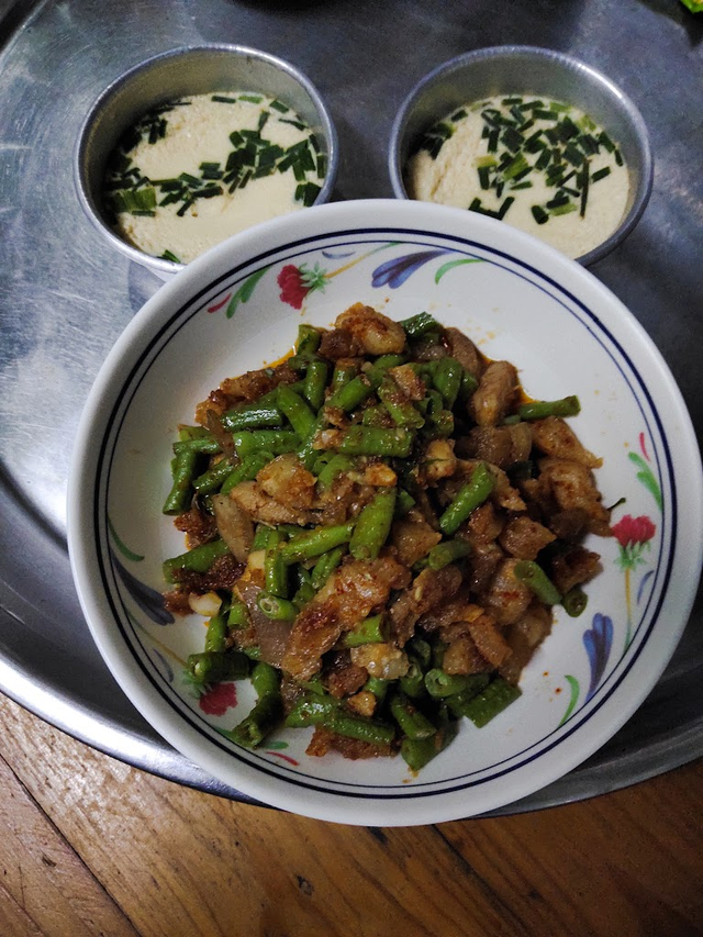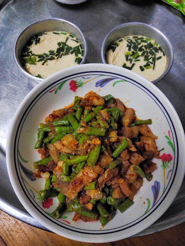 • Grandma's Morning Delights: Stir-fried Pork with Green Beans in Red Curry Paste and Steamed Egg