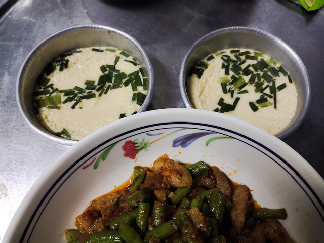 Hello, fellow foodies! I’m back again with a heartwarming breakfast from my grandma’s kitchen. This morning's perfect pairing is a delicious duo: a flavorful Stir-fried Pork with Green Beans in Red Curry Paste and a smooth and comforting Steamed Egg.